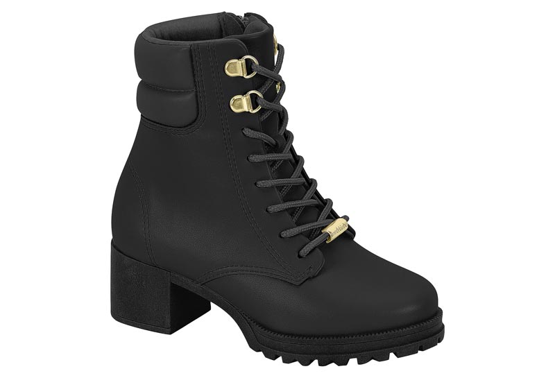 Bota Molekinha Coturno Cano Alto Com Cadarço E Ziper Preto