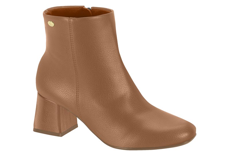 Bota Vizzano Salto Bloco Com Ziper Cano Medio Caramelo