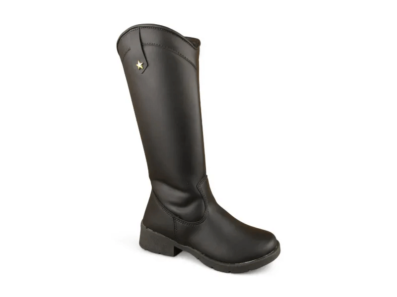 A Bota Texana Fuffy Cano Alto é puro destaque, com acabamento dourado e estrela decorativa que valoriza o visual. Estilosa e confortável, traz atitude ao look com um toque fashion. Perfeita para quem ama brilhar com personalidade.
