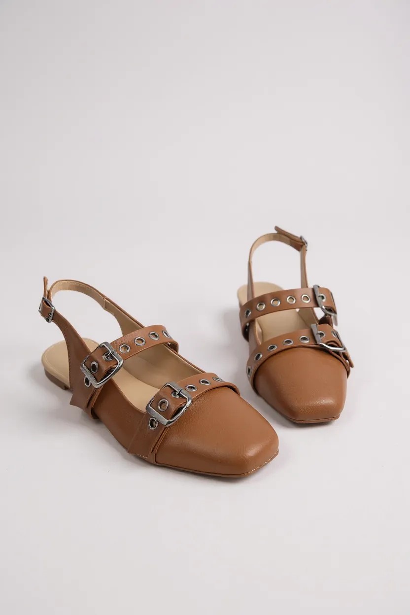 Mule Juliana Amaral Bico Quadrada Fivela Com Ajuste Caramelo