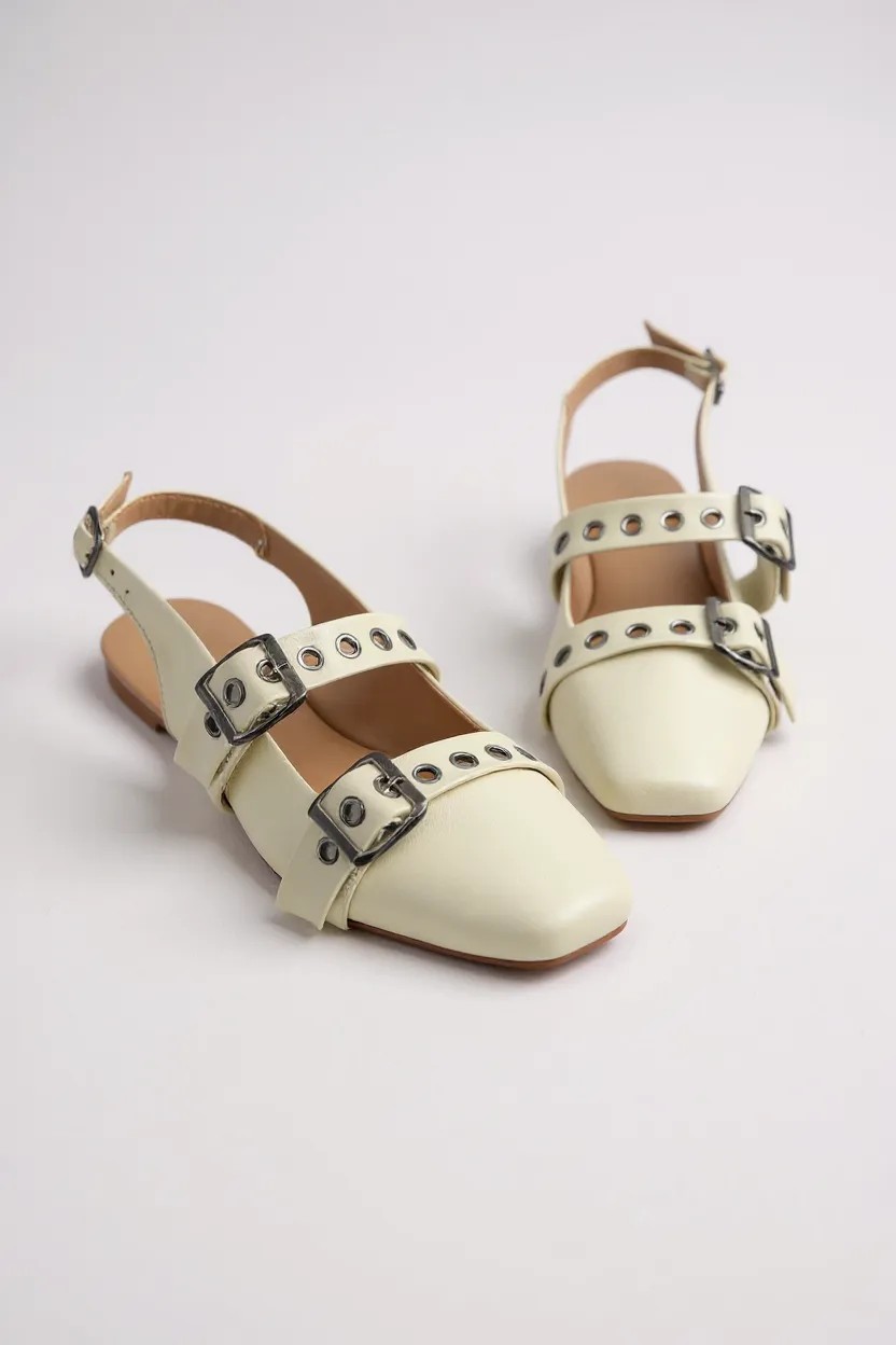 Mule Juliana Amaral Bico Quadrada Fivela Com Ajuste Off White