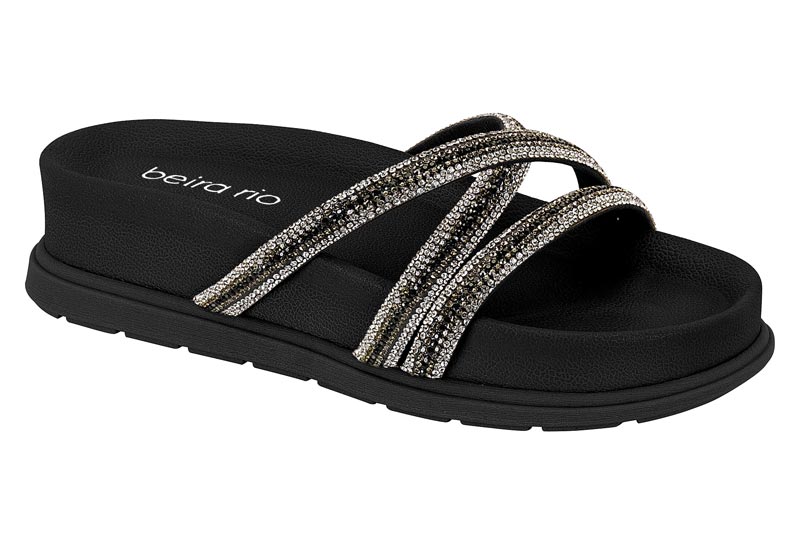 Papete Beira Rio Tiras Cruzadas Com Strass Formato Anatômico Preto/Grafite
