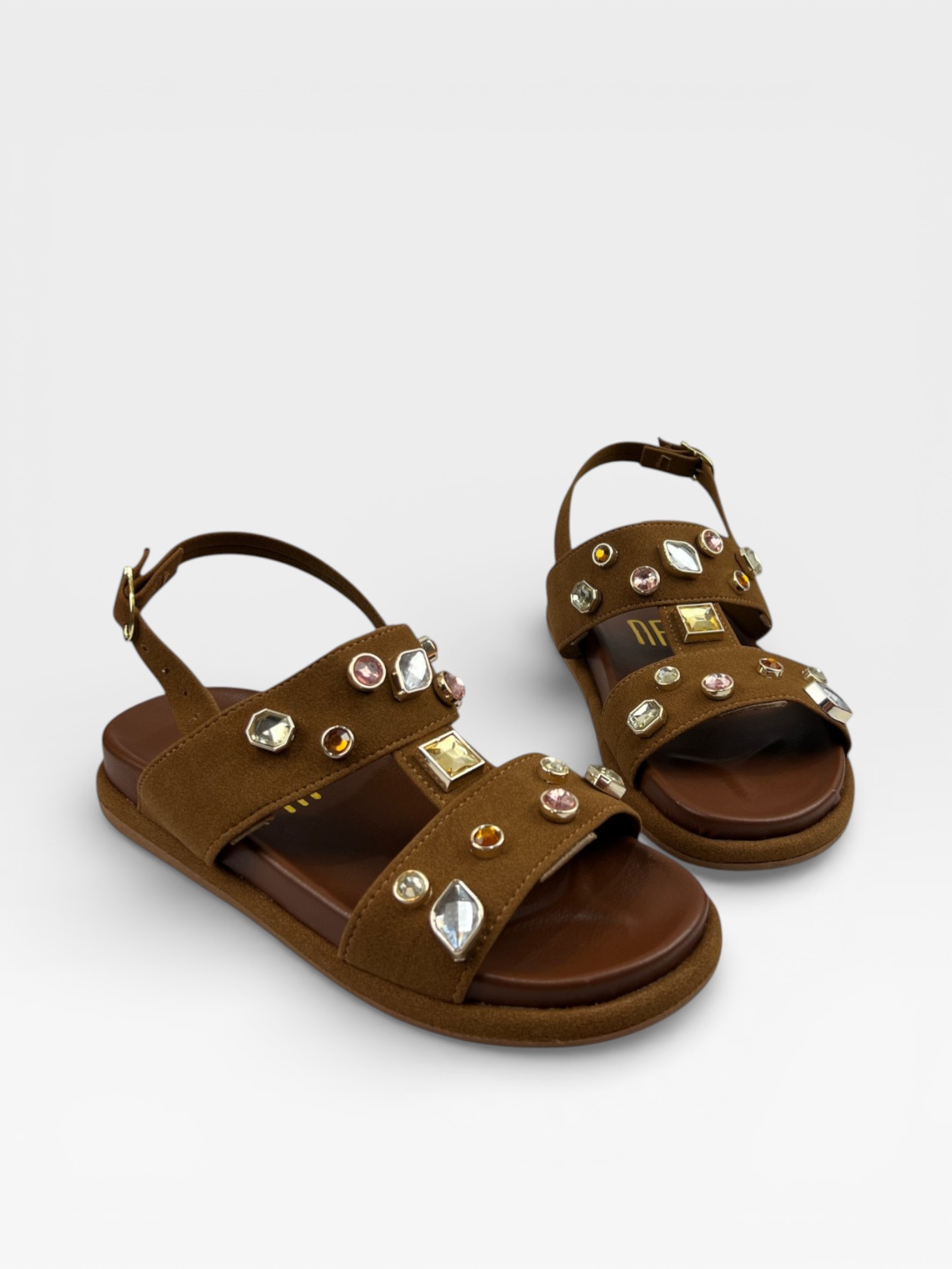 Papete feminina confortável, com tiras largas, tachas e pedrarias. Moderna, prática e perfeita para looks casuais e estilosos do dia a dia.