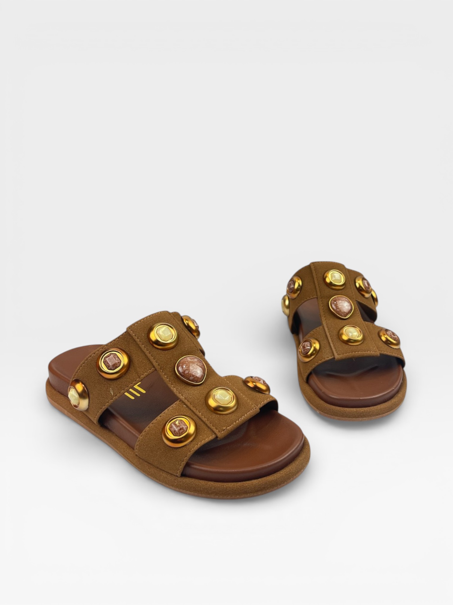 Papete Feminina Com Pedrarias Douradas Caramelo