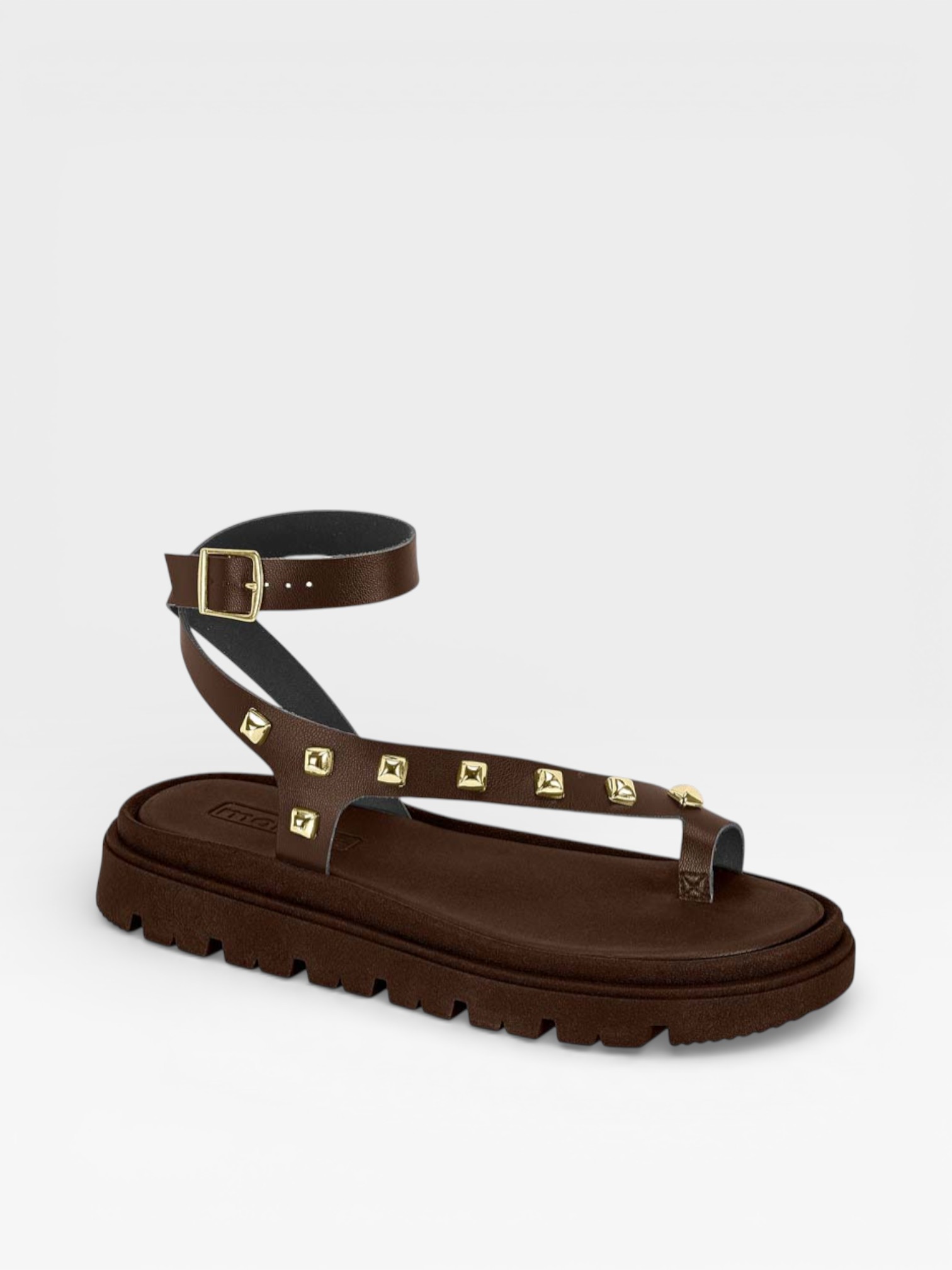 As tiras com aplicação de tachas adicionam um toque estiloso e contemporâneo ao calçado, valorizando o design e deixando o look ainda mais interessante. Além disso, o modelo oferece ajuste confortável aos pés, proporcionando segurança ao caminhar.