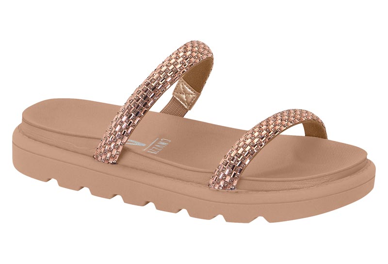 Papete Feminina Vizzano 2 Tiras Com Pedras Calce Facil Camel