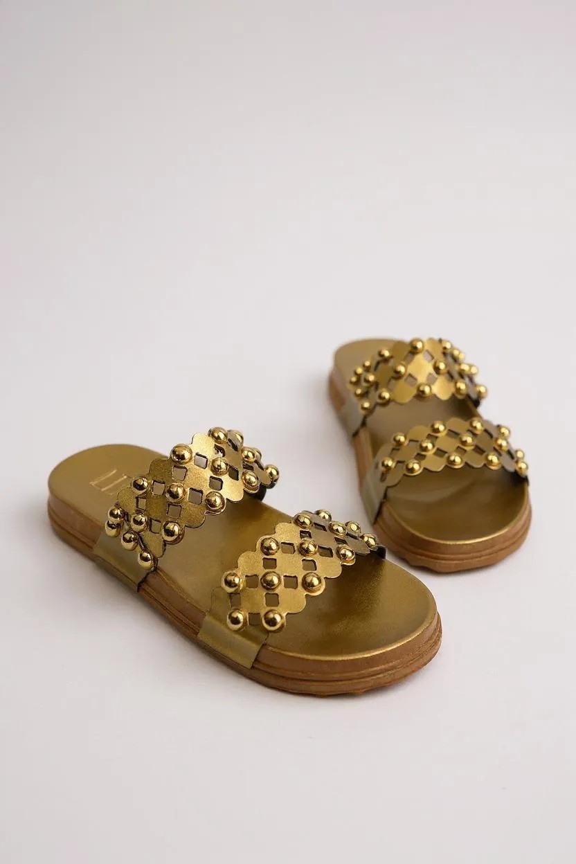 A Papete Littz, o modelo perfeito para quem busca conforto aliado a um design sofisticado. Ideal para dias quentes, essa papete feminina traz tiras em couro metalizado dourado com detalhes em tachas, garantindo um visual moderno e elegante para qualquer ocasião casual ou passeio. A palmilha acolchoada oferece conforto prolongado, enquanto a sola de borracha antiderrapante assegura segurança a cada passo. Seja para um look despojado ou para dar um toque especial na produção do dia a dia, a Papete Littz é a escolha certa para quem não abre mão de estilo e qualidade.