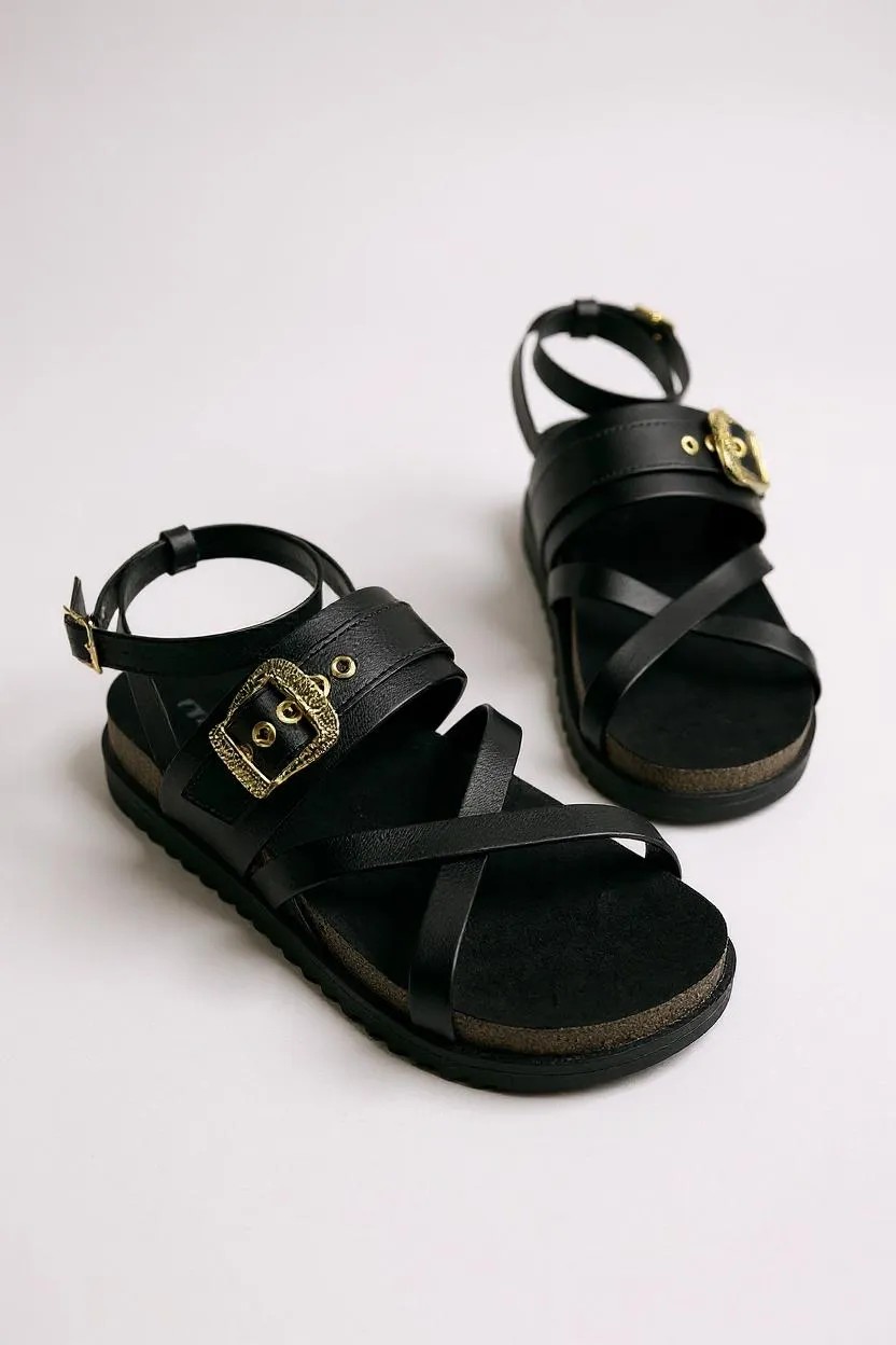 - Fecho com fivela ajustável para melhor adaptação ao pé