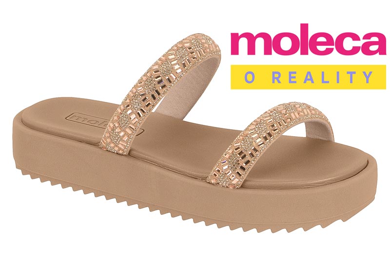 A Papete Flat Moleca com 2 tiras e strass é puro charme e conforto. As tiras brilhosas garantem um toque sofisticado ao visual. Perfeito para compor looks leves e estilosos em qualquer ocasião.