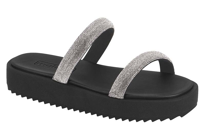 A Papete Flat Moleca com 2 tiras e strass é puro charme e conforto. As tiras brilhosas garantem um toque sofisticado ao visual. Perfeito para compor looks leves e estilosos em qualquer ocasião.