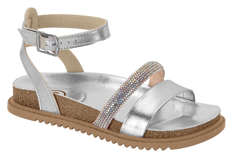 Papete Molekinha Metalizada Com Fivela Tira Com Strass Prata/Aurora