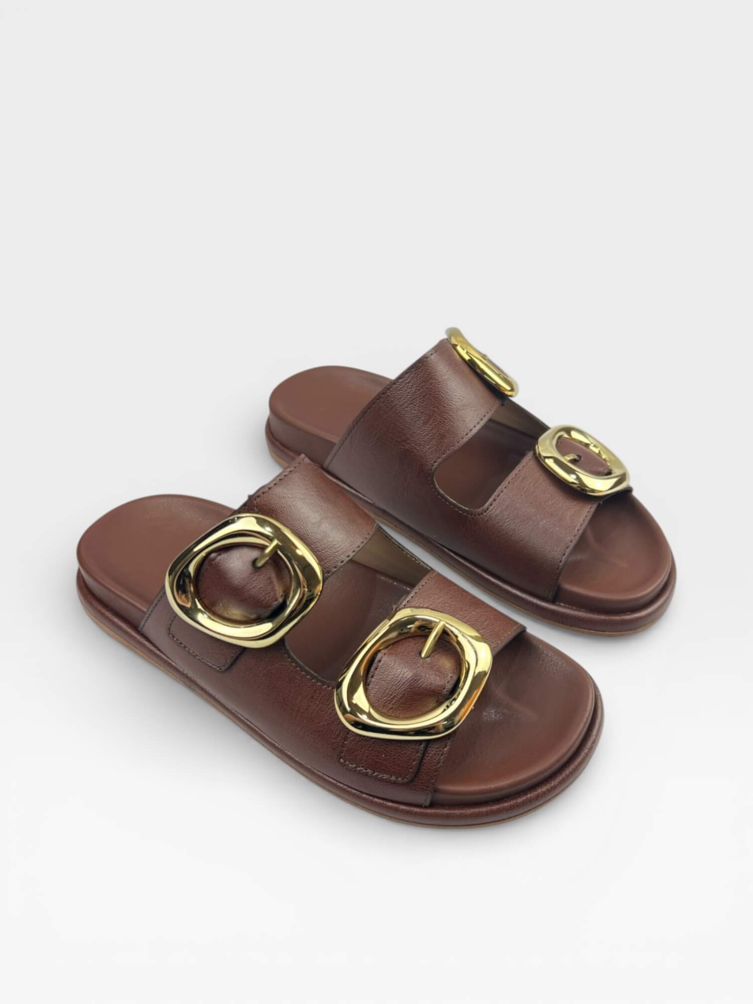 Papete Slide Af Marrom Cafe Com Fivelas Douradas