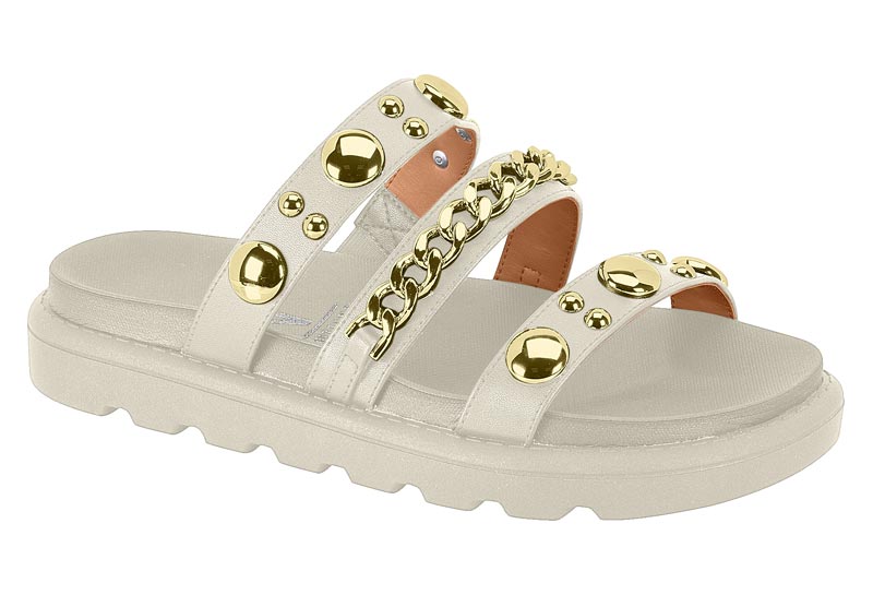 A Papete Vizzano traz atitude e estilo com tiras decoradas por tachas e correntes. O design calce fácil garante praticidade e conforto no dia a dia. Ideal para compor looks modernos e cheios de personalidade.