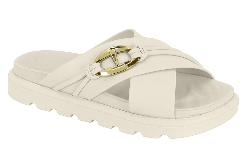 A Papete Vizzano é prática e estilosa, com tiras cruzadas em X que proporcionam ótimo ajuste. O detalhe dourado adiciona um toque de sofisticação ao visual. Ideal para looks casuais com conforto e elegância.