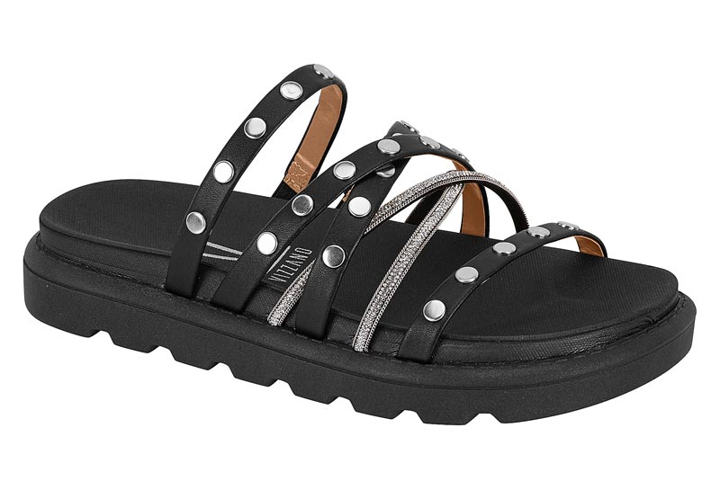 Papete Vizzano Tiras Com Tachas E Strass Calce Facil Preto/Preto