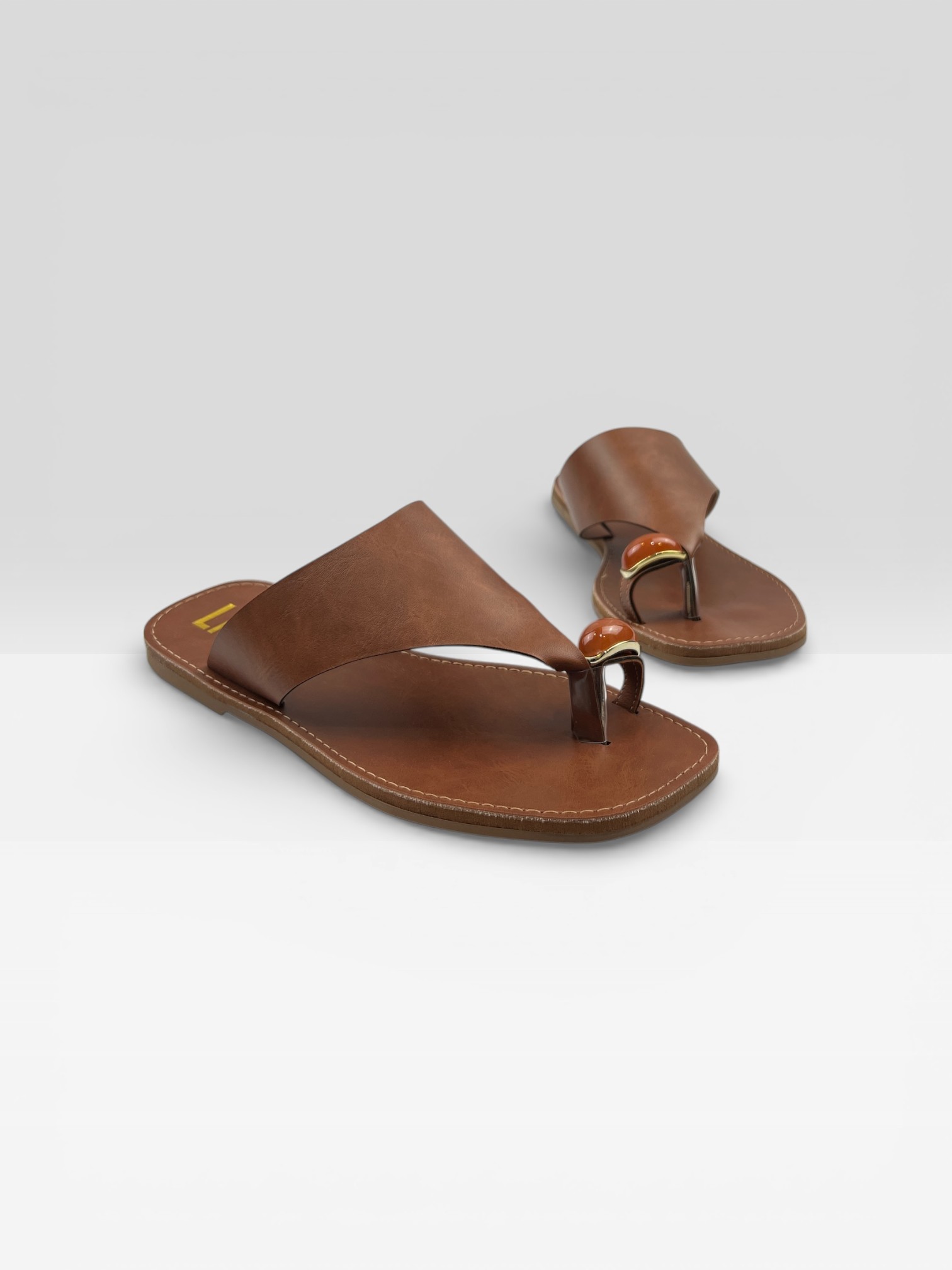 Rasteira feminina estilo casual, com design minimalista e tira larga que garante conforto e segurança ao caminhar. Possui detalhe metalizado no cabedal que traz charme e sofisticação ao modelo. Ideal para compor looks leves e versáteis nos dias mais quentes.