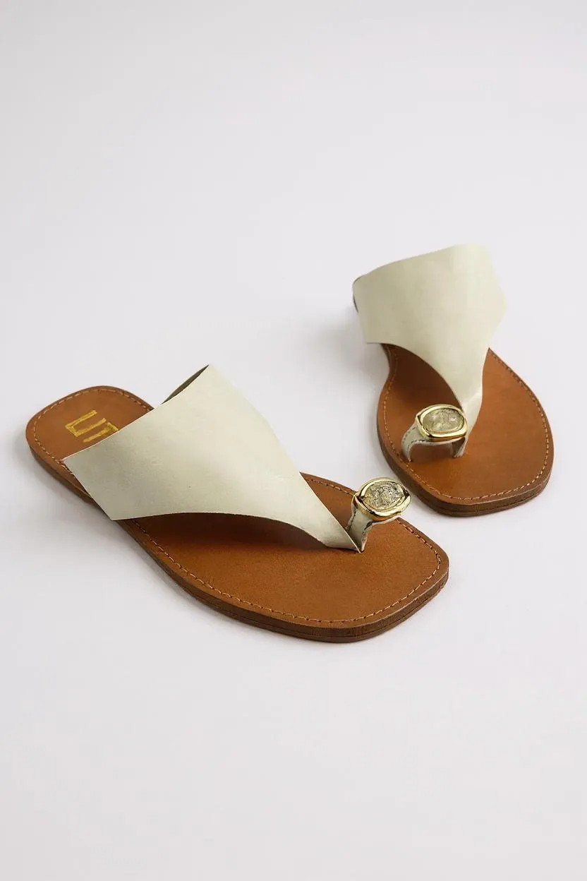 Rasteira Feminino Littz Chinelo Com Tira De Dedo Calf Off White/Off White
