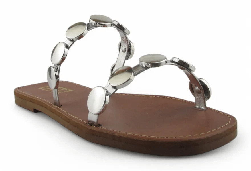 Rasteira Littz Calce Facil 2 Tiras Com Tachas Metalizada Prata