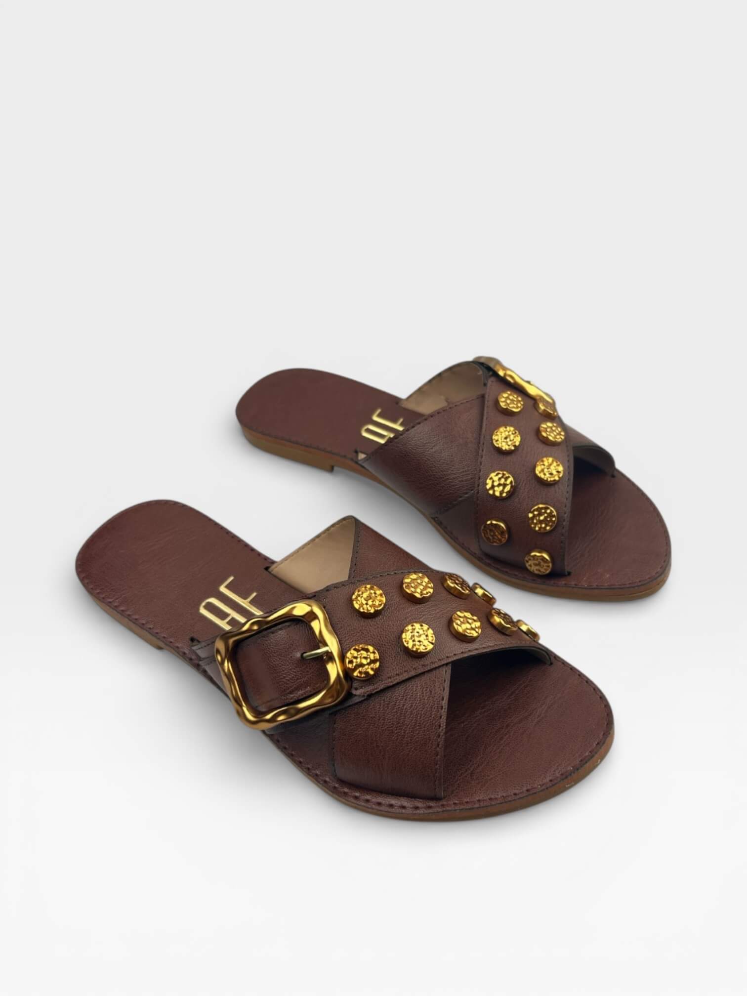 Rasteira Slide Af Com Pedrarias Douradas Cafe