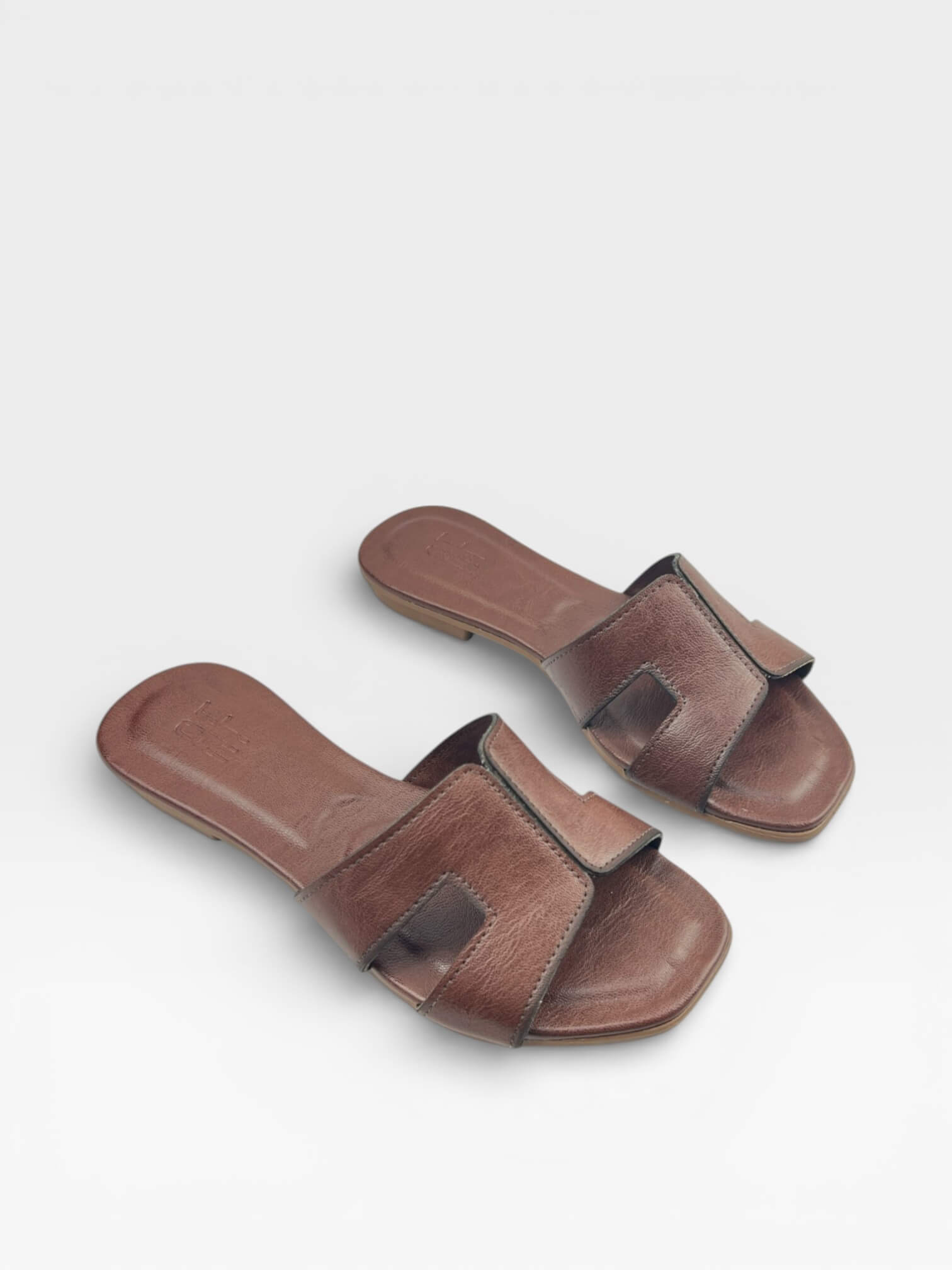 Slide AF marrom em couro, perfeita pra um visual elegante e minimalista.