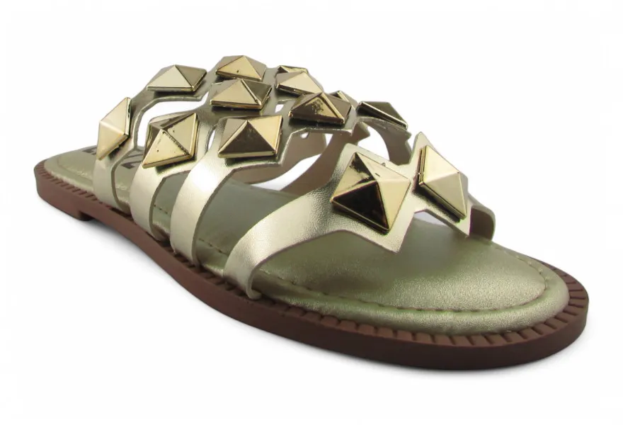 Rasteira Littz Tira Pirâmide Metalizada Calce Fácil Ouro