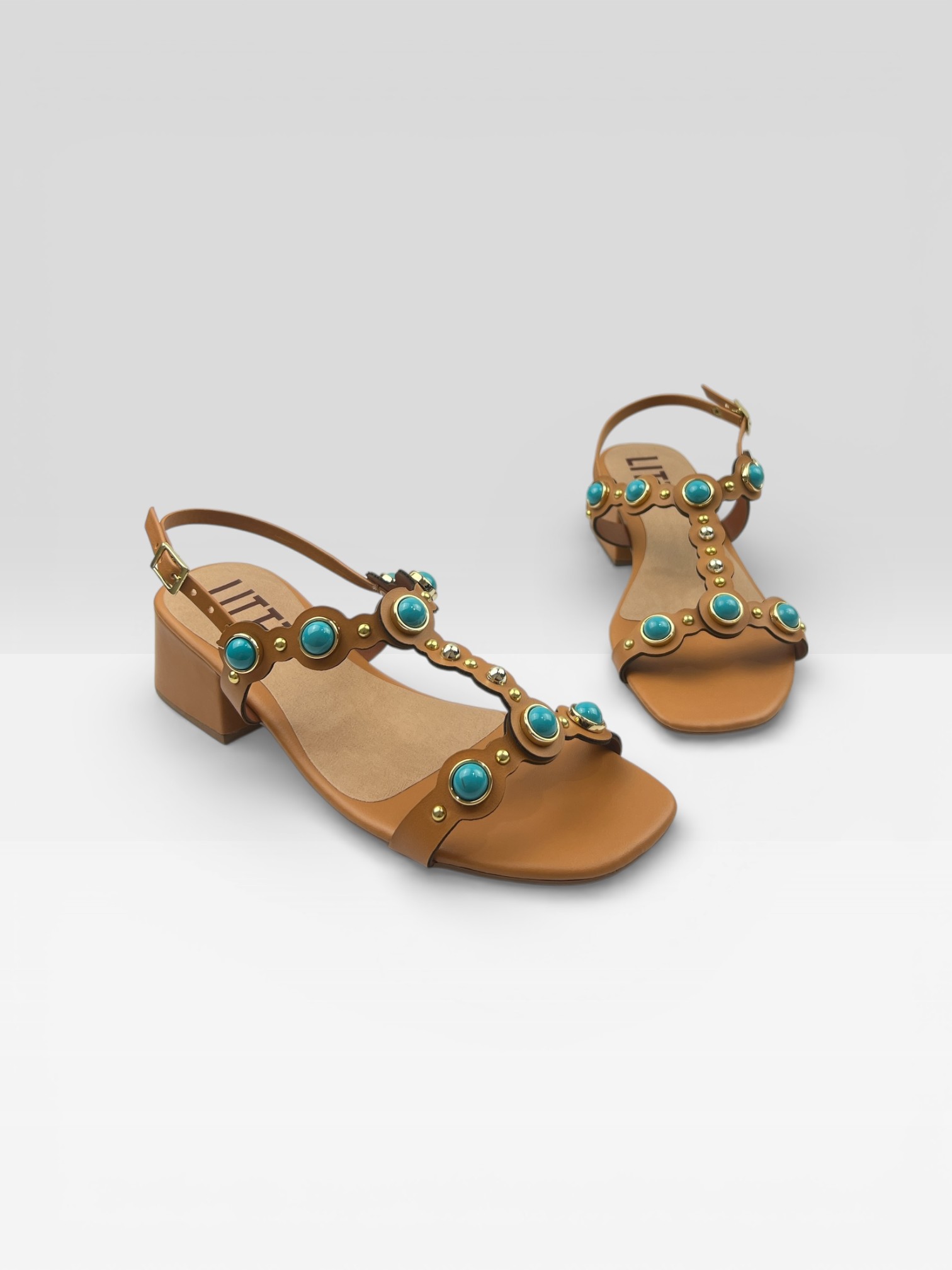 Salto Blocofeminina Com Pedrarias Carvalho/Aurora/Ouro