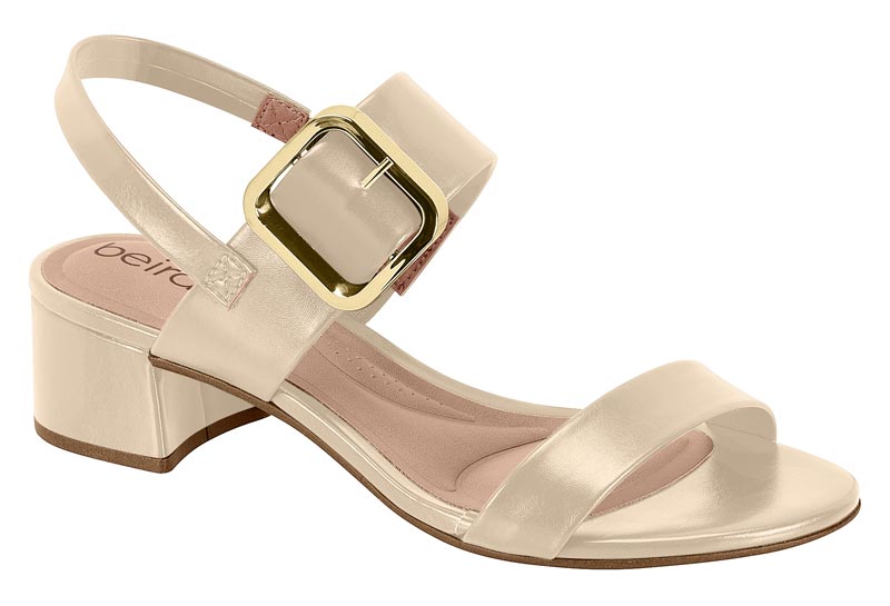 Sandália Beira Rio Feminina De Salto Bloco Com Fivela Bege