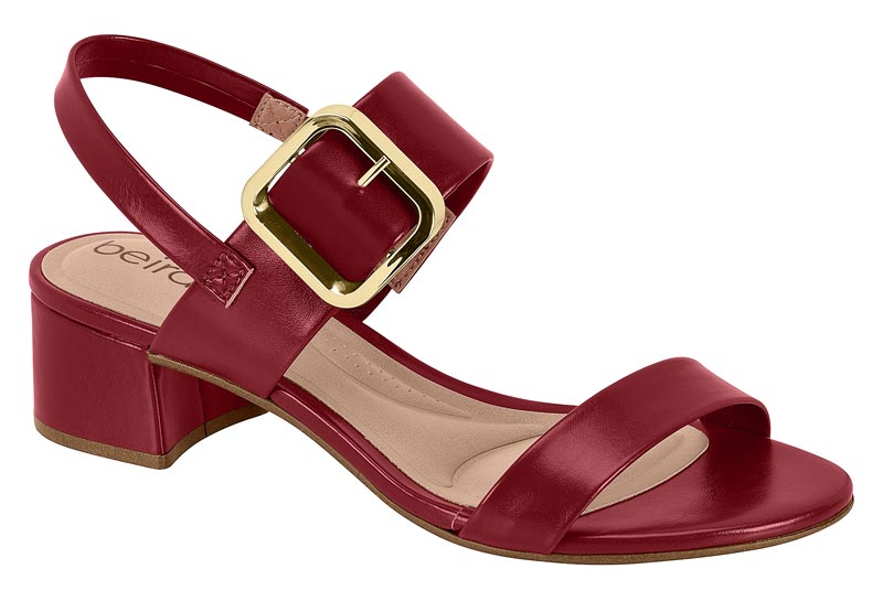 Sandália Beira Rio Feminina De Salto Bloco Com Fivela Vermelho