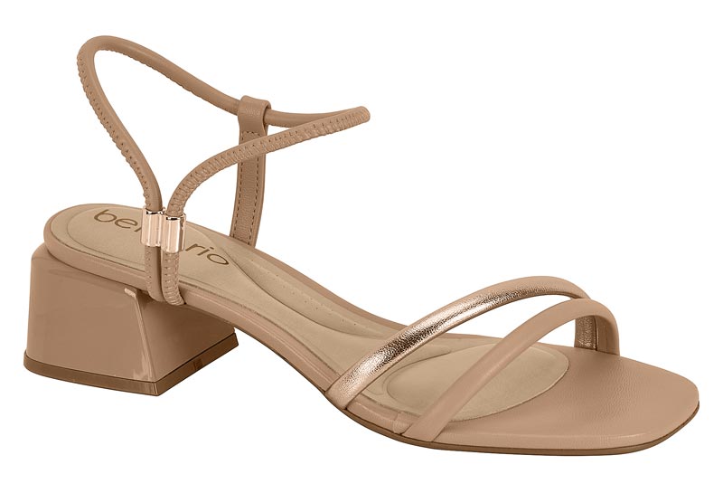 Sandalia Beira Rio Salto Bloco Calce Facil Com Tiras Metalizada Nude/Ouro Rosado