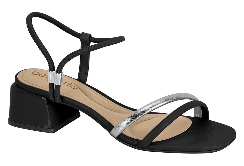 Sandalia Beira Rio Salto Bloco Calce Facil Com Tiras Metalizada Preto/Prata