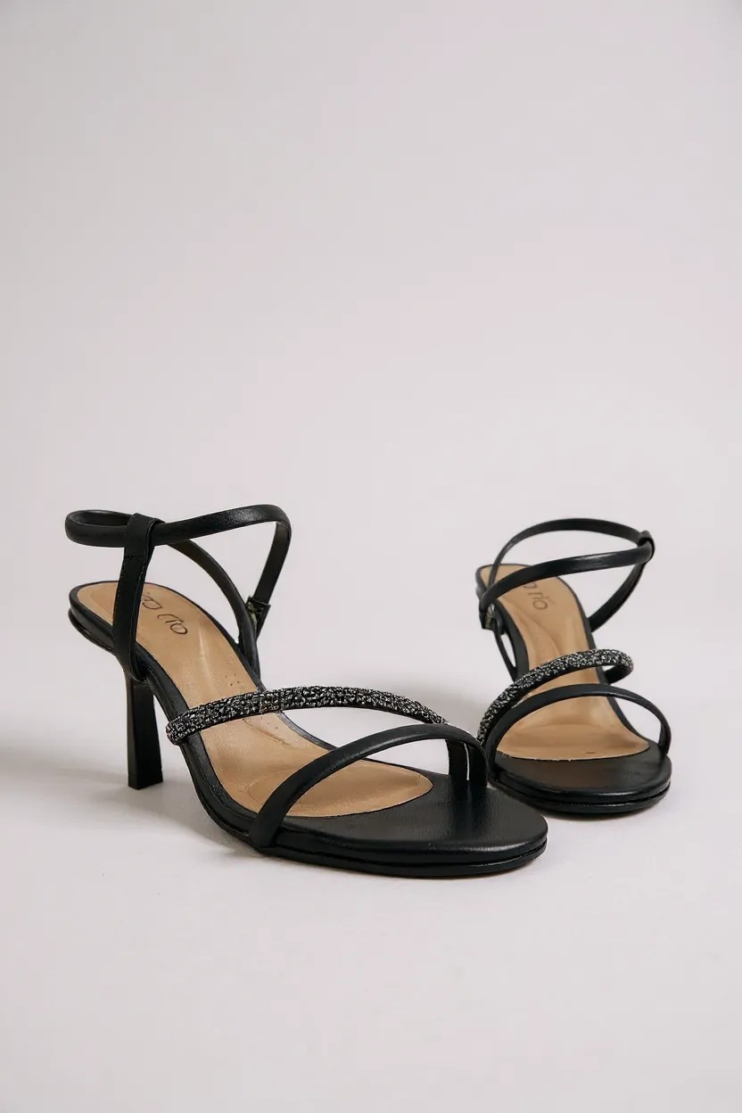 Sandália Feminina Beira Rio De Tiras Finas E Com Strass Em Salto Fino Preto/Grafite