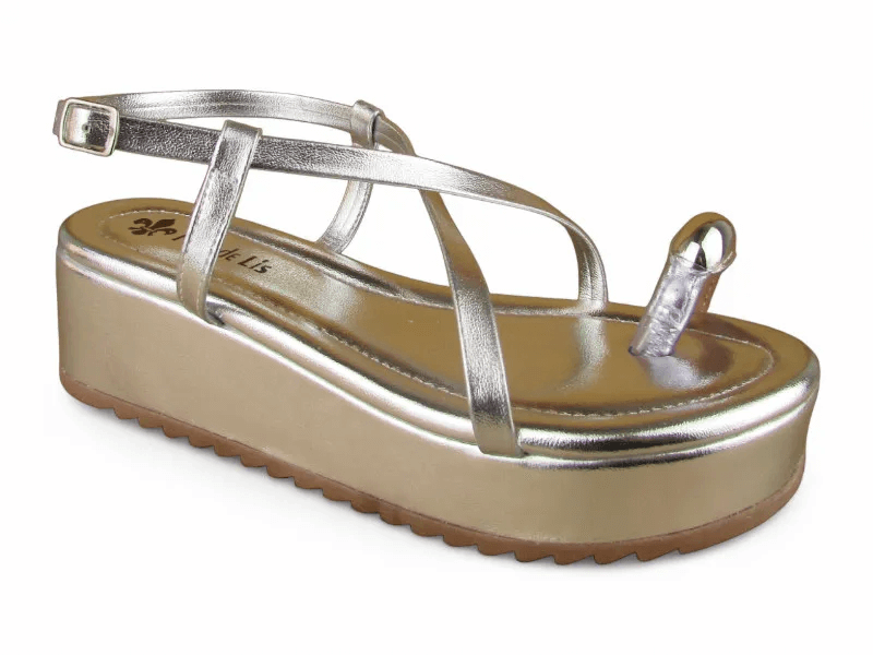 Sandalia Flat Flor De Lis Fivela Metalizada Com Adorno Prata