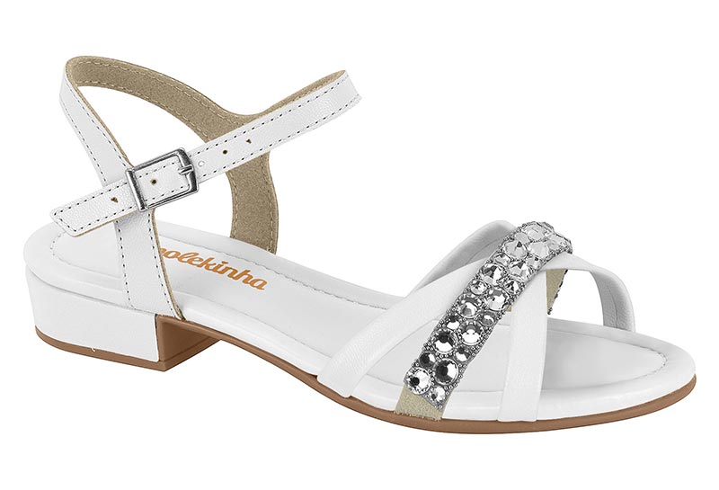 Sandália Infantil Com Pedrarias E Salto Baixo Branco