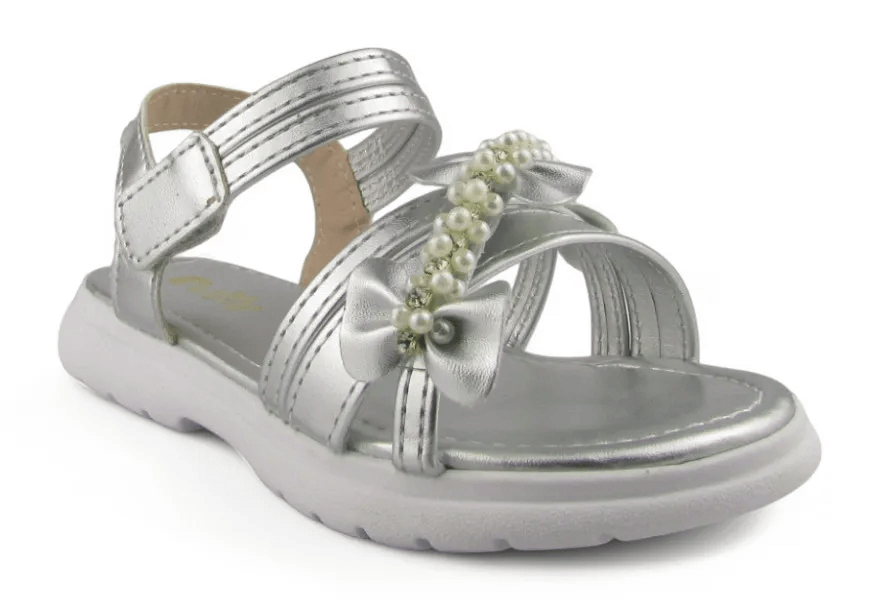 Sandalia Infantil Fuffy Metalizada Com Laço Perola Prata