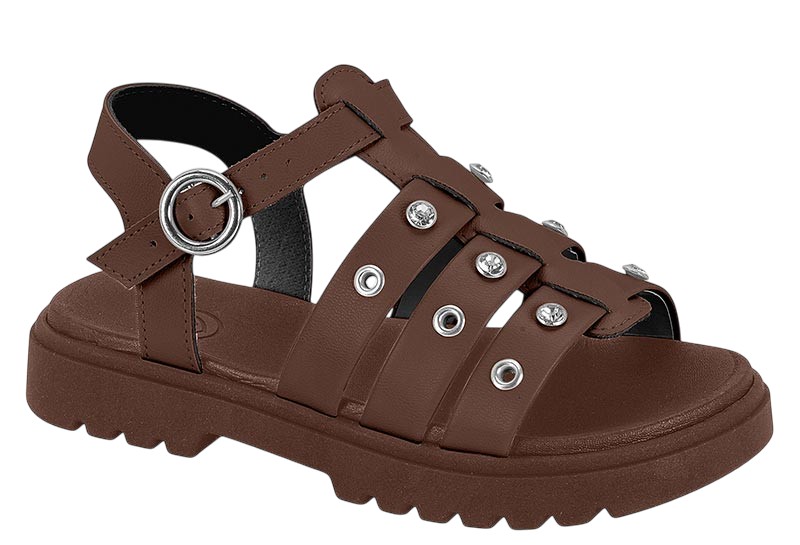 Sandalia Infantil Molekinha Com Tiras Largas E Detalhes Prateado Marrom