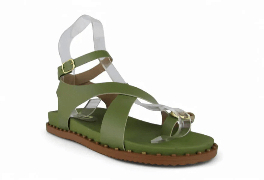 Sandalia Littz Rasteira Fivela 2 Tiras Com Adorno Exercito