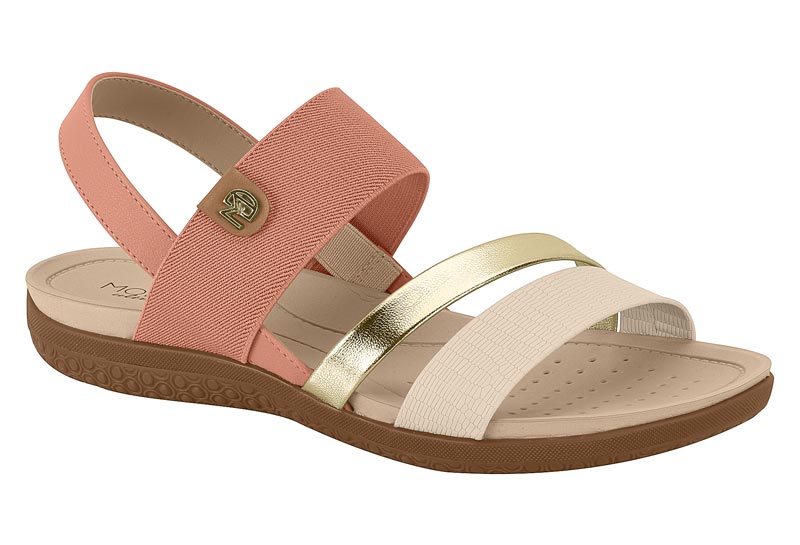 Sandalia Modare Ultra Conforto Tiras Metalizada Calce Facil Pessego/Creme/Dourado/Camel