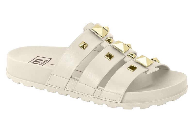 Sandalia Papete Moleca 3 Tiras Com Spike Piramide Branco Off