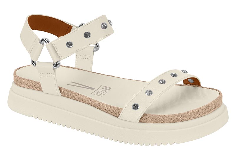 Sandalia Papete Vizzano Com Cristais Velcro Tratorada Branco Off