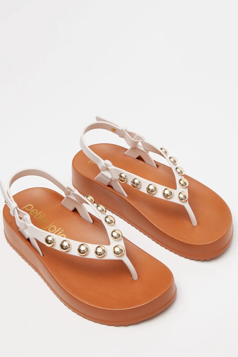 A Sandália Petite Jolie, o toque de estilo e conforto essencial para seus looks do dia a dia. Com design moderno e delicado, ela apresenta acabamento branco com detalhes em bolinhas douradas que conferem elegância discreta e versatilidade para combinar com qualquer ocasião. Ideal para a mulher que busca praticidade sem abrir mão da personalidade, esta sandália possui solado anatômico que proporciona conforto prolongado e tira ajustável para melhor encaixe e segurança ao caminhar.