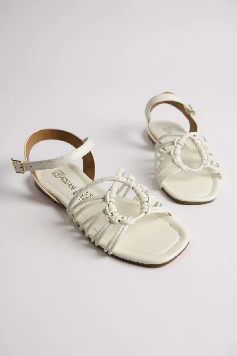 Sandalia Rasteira Addan Tiras Circulo Branco