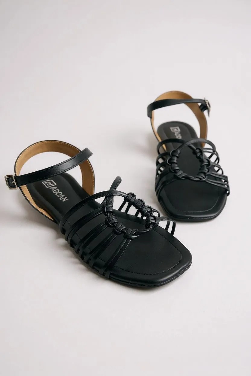 Sandalia Rasteira Addan Tiras Circulo Preto