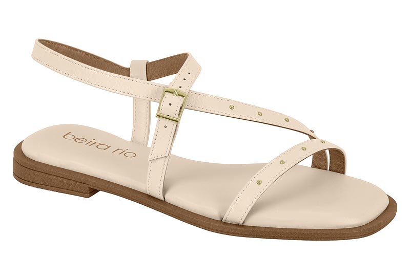 Sandalia Rasteira Beira Rio Com Fivela Creme