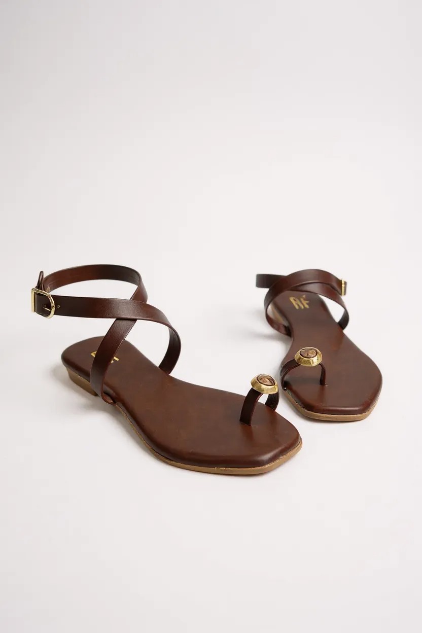 Sandália Rasteira Feminina Com Detalhe Dourado Browny