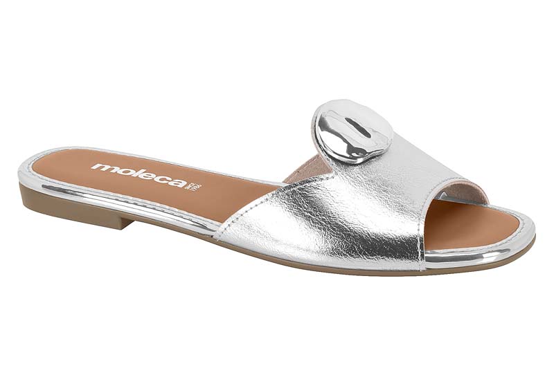 Sandalia Rasteira Feminina Com Partes Metálica Prata