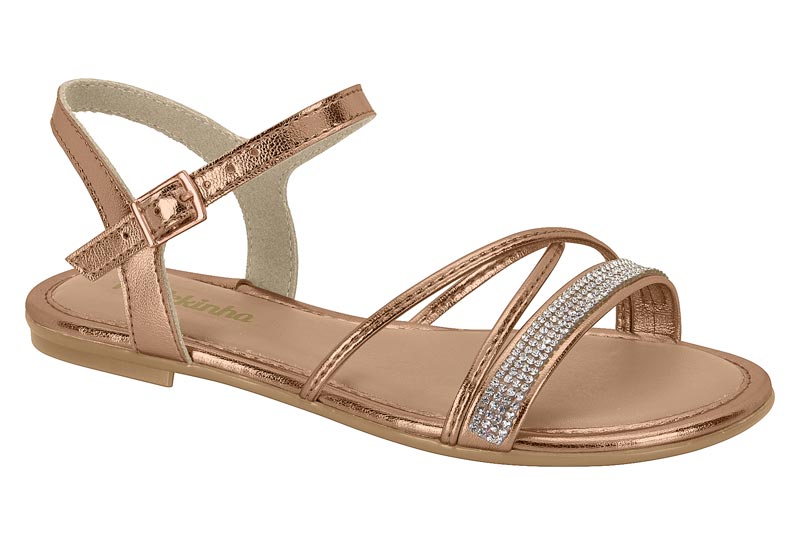 Sandalia Rasteira Infantil Molekinha Com Strass Ouro Rosado