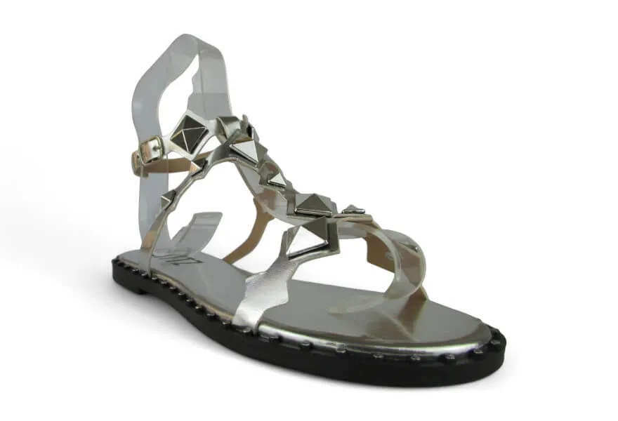 Sandalia Rasteira Littz Com Tiras Spike Metalizada Prata