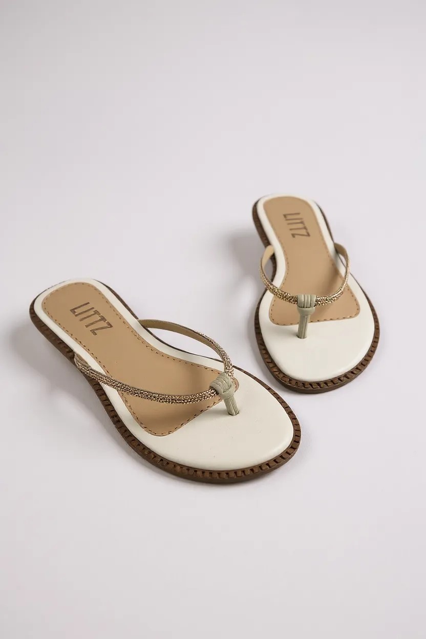 Sandália Rasteira Littz Com Tiras Delicadas E Detalhe Central Calce Facil Branco