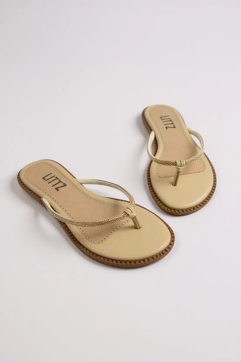 Sandália Rasteira Littz Com Tiras Delicadas E Detalhe Central Calce Facil Nude