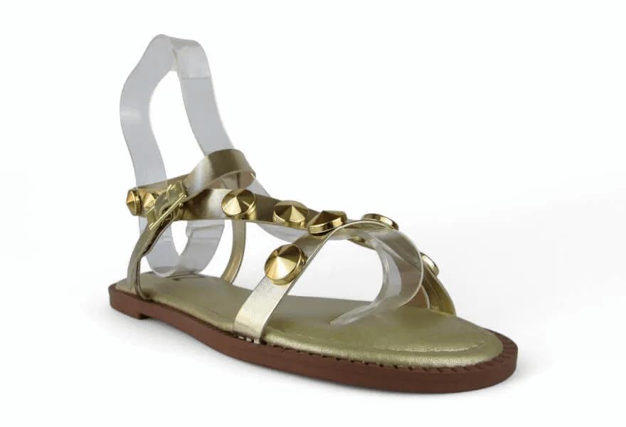 Sandalia Rasteira Littz Fivela Tira Com Tachas Douradas Ouro Light